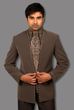 Shown here: jodhpuri coat/blazer, waistcoat/coty, & dark grey colour slim fit pleat less trouser.