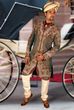 Shown here: sherwani with dhoti(image 3) with churidar(image 4), scarf with brooch, royal safa, & royal mojari.
