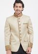Beige Color Jute Fabric Jodhpuri Suit With Work