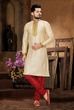 A. We send the best suitable khesh/stole for your kurta set from the style pattern selected by you. A contrast colour khesh/stole is selected for the kurta set to make it a perfect style statement in the ceremony.