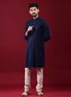 Blue Chikankari And Sequance Work Kurta With White Pajama
