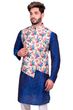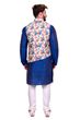 Blue Kurta Set With Asymetrical Floral Print Silk Jacket