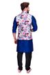 Blue Kurta Set With White Multi Floral Print Silk Jacket