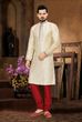 Cream Art Silk & Jacquard Embroidery Kurta Payjama