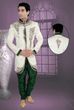 A. We send the best suitable safa/wedding turban for your indo western from the style pattern selected by you. Usually a contrast colour safa/wedding turban is selected for the indo western but at times a matching safa also looks good. It all depends on the design of indo western.