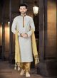 A. We send the best suitable khesh/stole for your kurta set from the style pattern selected by you. A contrast colour khesh/stole is selected for the kurta set to make it a perfect style statement in the ceremony.
