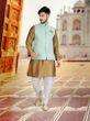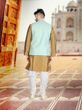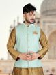 • Golden Silk Kurta With Luckhnavi Silk Pista Nehru Jacket