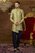 A. We send the best suitable khesh/stole for your indo western from the style pattern seleted by you. A contrast colour khesh/stole is selected for the indo western to make it a perfect style statement in the ceremony.