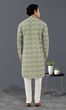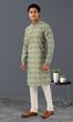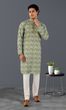 • Green Color Zigzag Print Cotton Silk Kurta Pajama