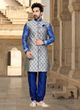 A. We send the best suitable khesh/stole for your indo western from the style pattern seleted by you. A contrast colour khesh/stole is selected for the indo western to make it a perfect style statement in the ceremony.