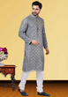 • Grey Mirror Work Kurta Pajama On Silk Fabric