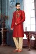 • Kalamkari Red Designer Collection Royal Sherwani For Wedding