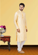 Light Yellow Printed Silk Kurta Pajama