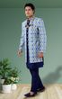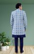 • Lucknowi With Tikki Work Blue Color Jacket Style Sherwani