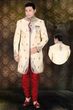 A. We send the best suitable safa/wedding turban for your sherwani from the style pattern selected by you. Usually a contrast colour safa/wedding turban is selected for the sherwani but at times a matching safa also looks good. It all depends on the design of sherwani.