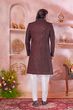 A. The length of the Readymade Sherwani is usually upto knee, but in some designs it may be shorter. It varies from design to design. For more info kindly refer to size guide located right next to size selection tab.