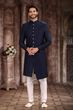 • Navy Blue Nawabi Style Indo Western Sherwani