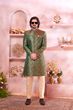A. We send the best suitable safa/wedding turban for your Readymade Sherwani from the style pattern selected by you. Usually a contrast colour safa/wedding turban is selected for the Readymade Sherwani but at times a matching safa also looks good. It all depends on the design of Readymade Sherwani.
