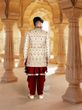 • Plush Cream Royal Silk Sherwani With Kurta