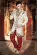 A. We send the best suitable khesh/stole for your indo western from the style pattern seleted by you. A contrast colour khesh/stole is selected for the indo western to make it a perfect style statement in the ceremony.