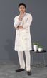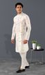 White Floral Print Silk Kurta Pajama