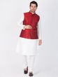 White Kurta Pajama With Maroon Jacket